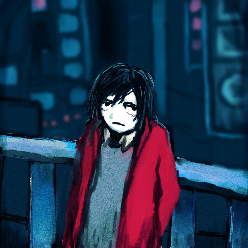 夜のネオン街ぽい絵を描こうとがんばっていたけど力尽きて人を描いた。